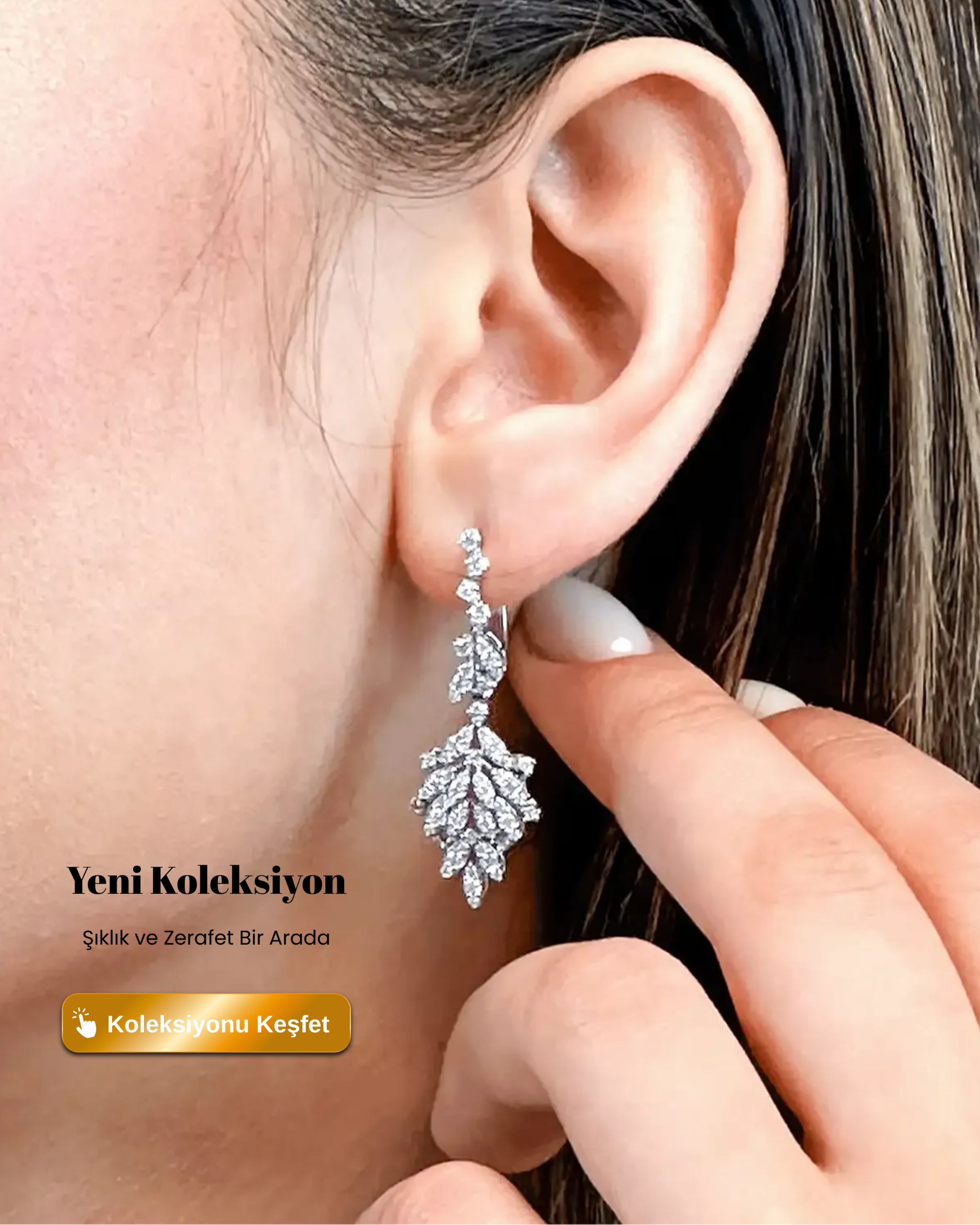- Parlak taş detaylı kalp form